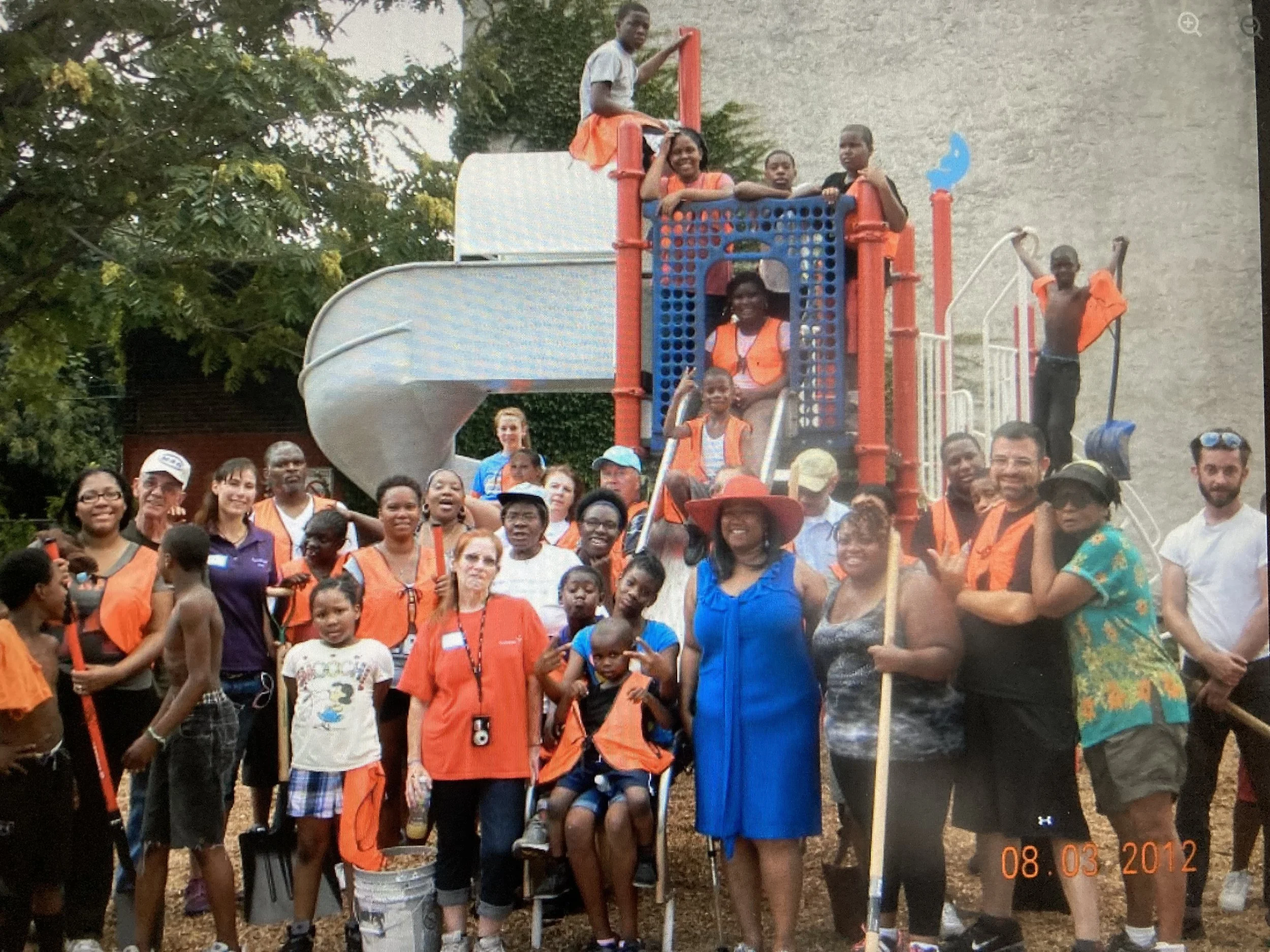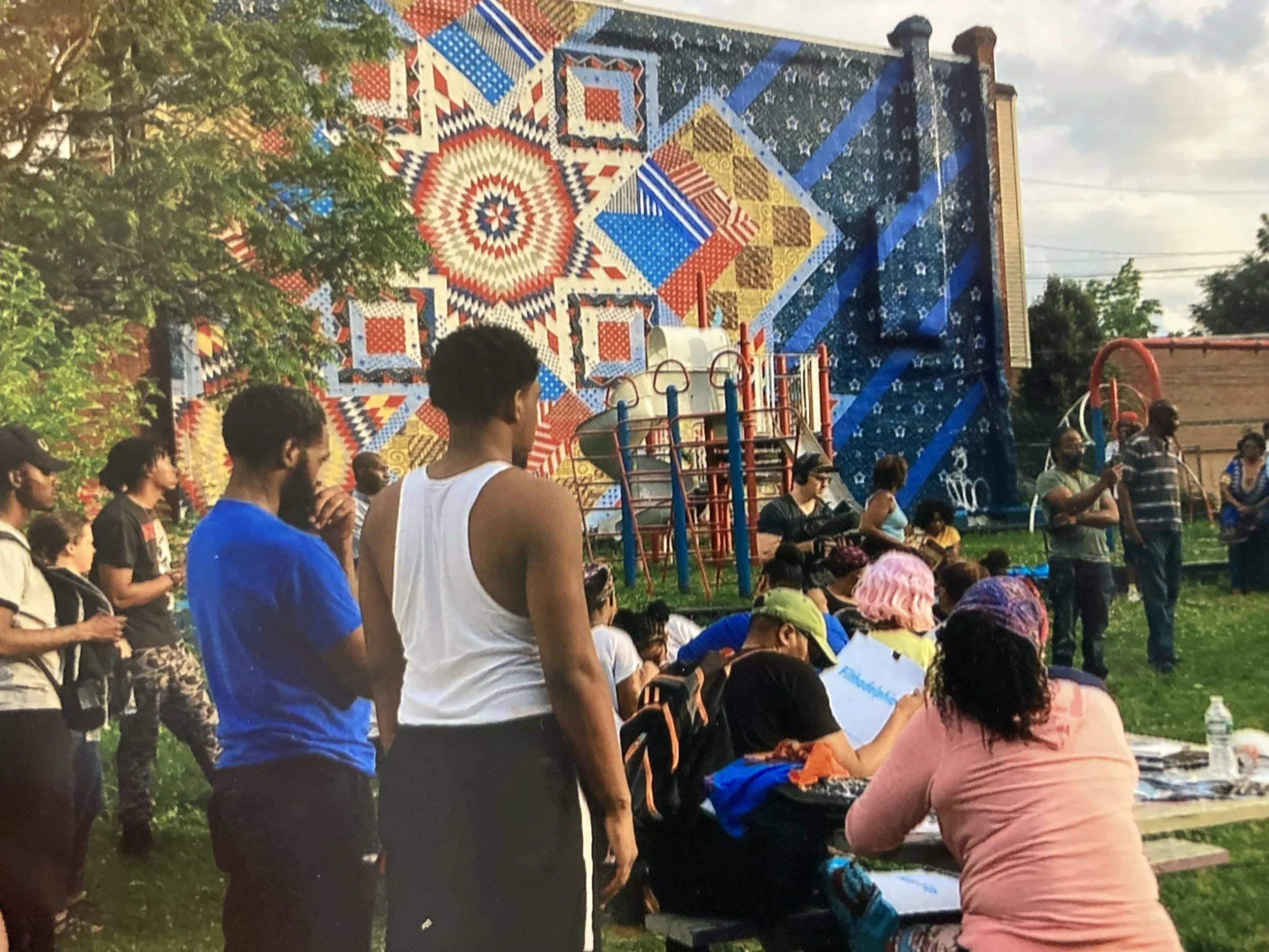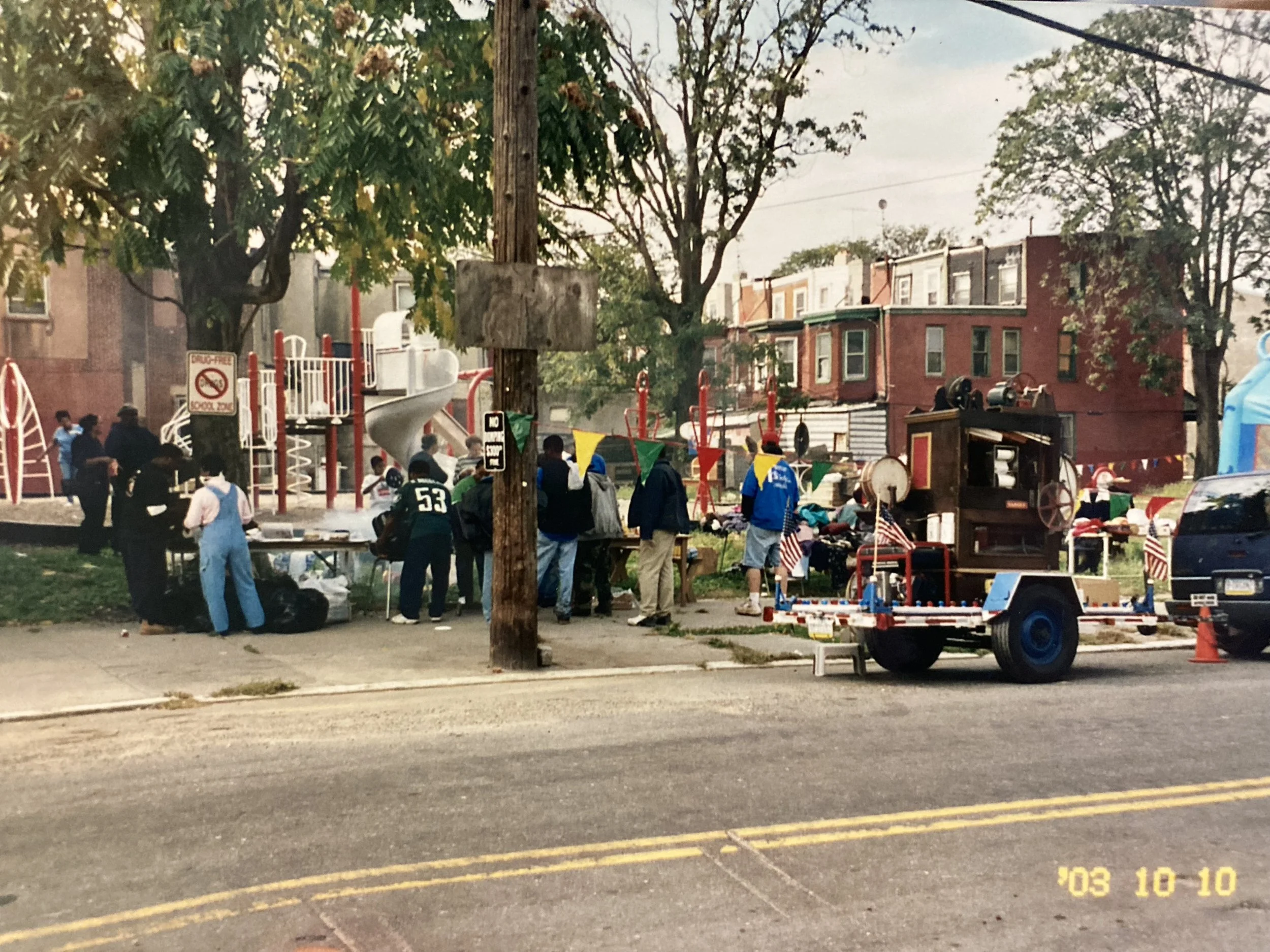 North Star Park has been decades in the making, and it’s not done yet. The East Parkside Residents Association (EPRA) led the effort and galvanized the community to create this space for all of us. Ms. Callalilly Cousar (President), along with neighbors Ms. Bertha Cranshall (Fundraiser), Ms. Dorothy Ferguson (Secretary), Ms. Dorothy Crawford (Vice President), Mr. Alexander McFadden, Mr. Harvin Thurmrin, Mr. Ronald Coleman and others formed the East Parkside Residents Association (EPRA) in 1996. Their participation with The Parkside Historic Association and Mr. James and Ms. Charlotte Brown, builders of the Parkside Avenue Mansions, opened up the opportunity to acquire some of the land on 41st Street between Cambridge Street and Poplar Street after the removal of severely dilapidated buildings (through their advocacy). Neighborhood children would play in this new lot once the buildings were removed, and community members wanted a safe play space for children in the neighborhood. In 2002 Mr. Harvin Thurman wrote a decisive grant to Kaboom playground equipment company. The EPRA team was awarded the grant for a new playground installation, and in partnership with Councilwoman Janie Blackwell, Home Depot, Bryn Mawr Presbyterian Church, First African Presbyterian (now New River), Christ Community Church, Calvary Chapel, Heavenly Hall, Ms. Maggie Gathers, Ms. Movita Harrell, and many other neighbors, the playground was built! Later on, the beautiful mural was created in partnership with Mural Arts Program and Kathy Harris.